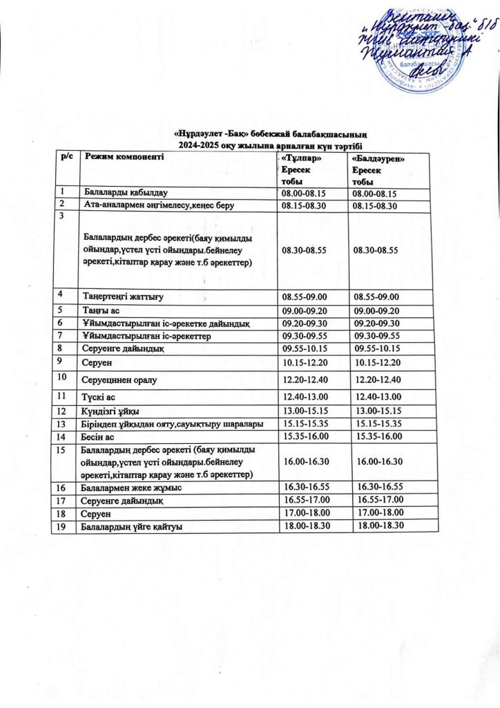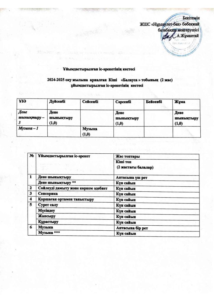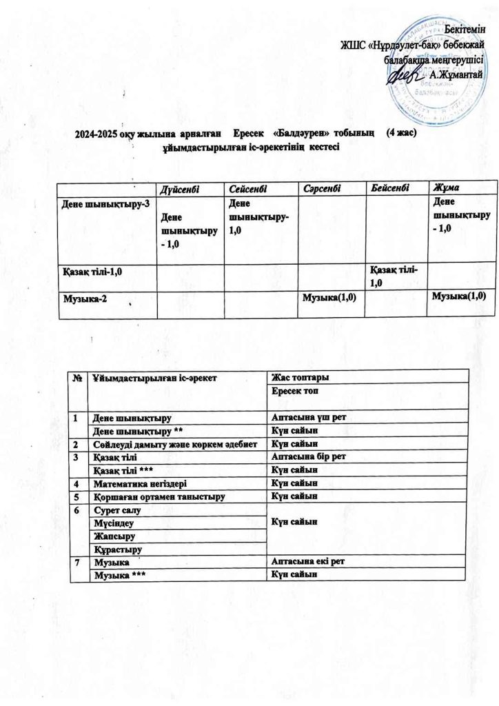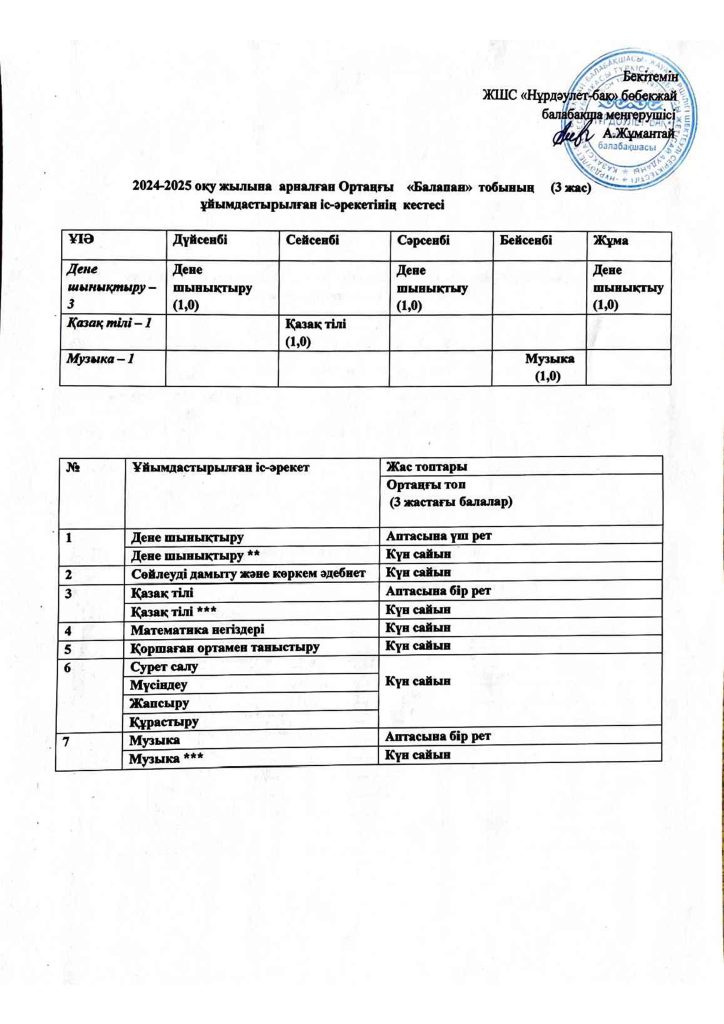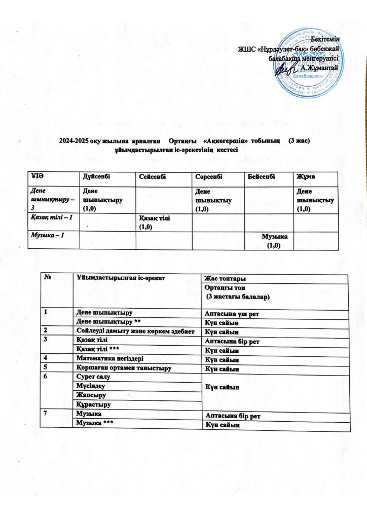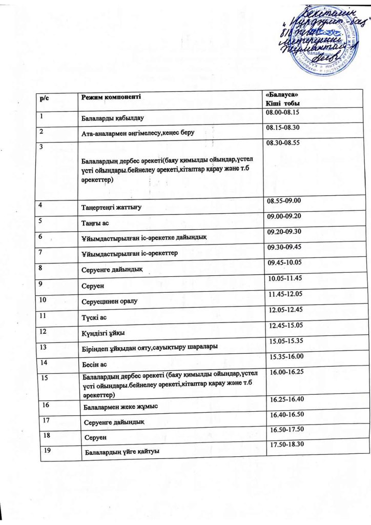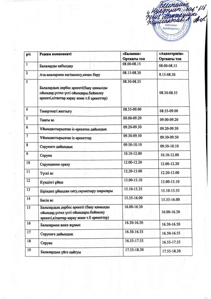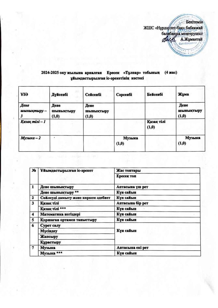 КҮН ТӘРТІБІ, ОҚУ ІС-ӘРЕКЕТ КЕСТЕСІ